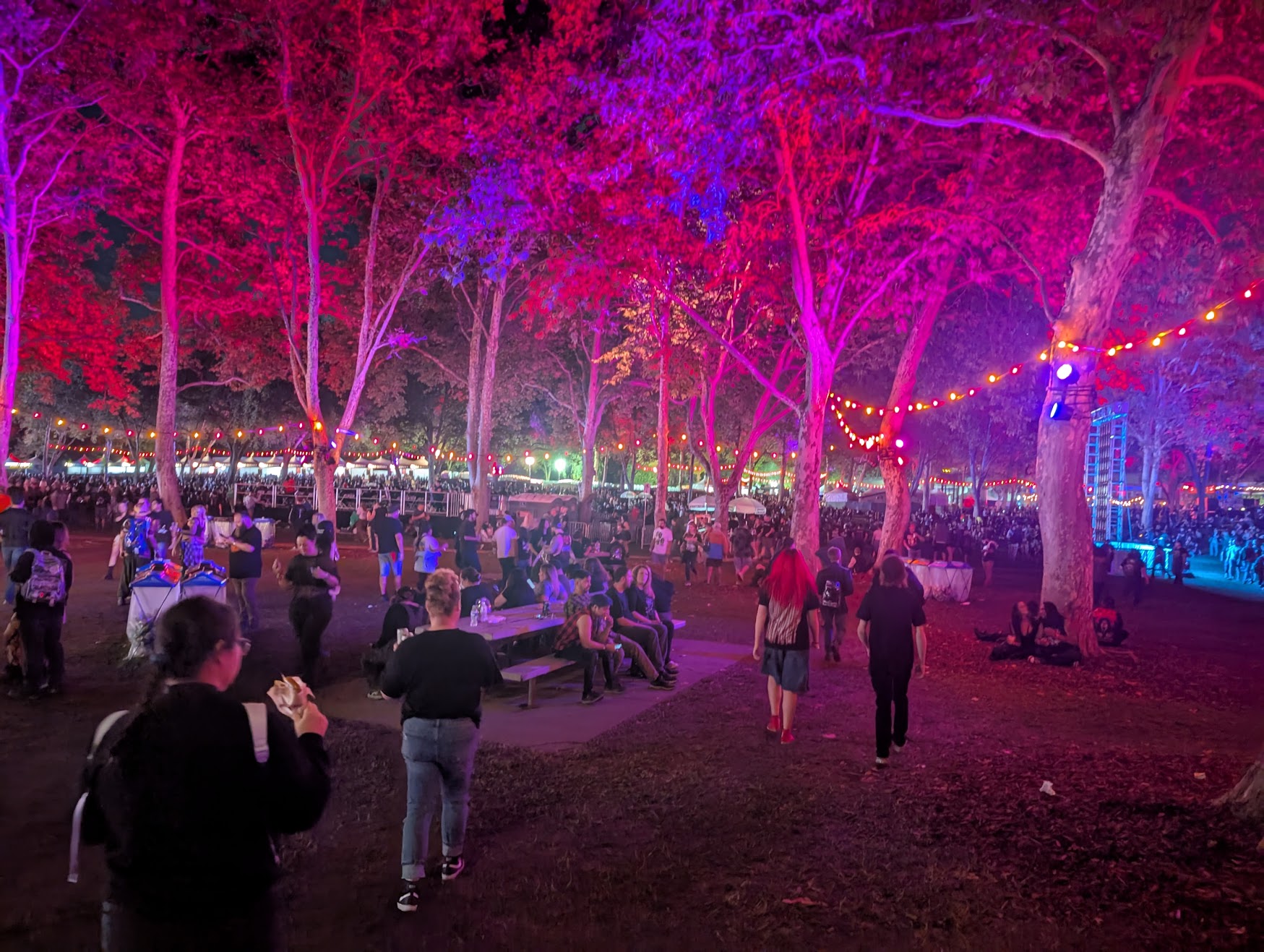 What really struck me this year, though, was the crowd itself. The energy was a patchwork of generations and personalities stitched together by pure enthusiasm. I saw families with kids in noise-canceling headphones, adult kids bringing their parents to see the bands they grew up on, and friend groups that spanned decades in age. The outfits alone could’ve been their own stage show—from hilariously oversized inflatable dinosaurs to outfits so revealing and chaotic you couldn’t help but respect the confidence. But beyond the shocks and laughs, the atmosphere felt unified in a way you don’t always get at large festivals. Political views, music preferences, and age differences melted into irrelevance. Everyone was there to have a good time, and somehow, it felt like everyone understood that about each other.