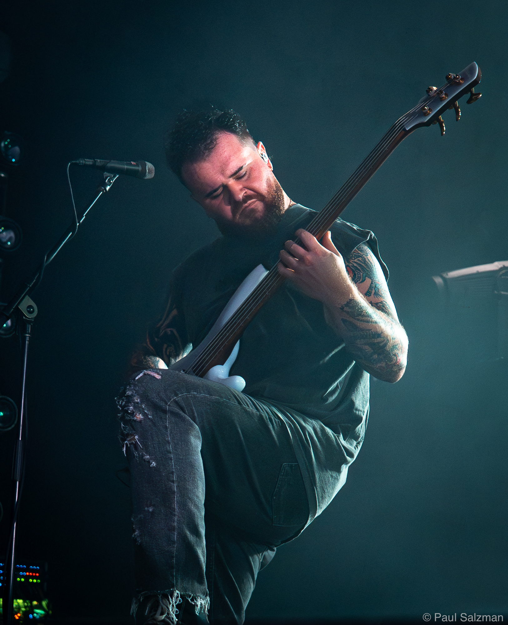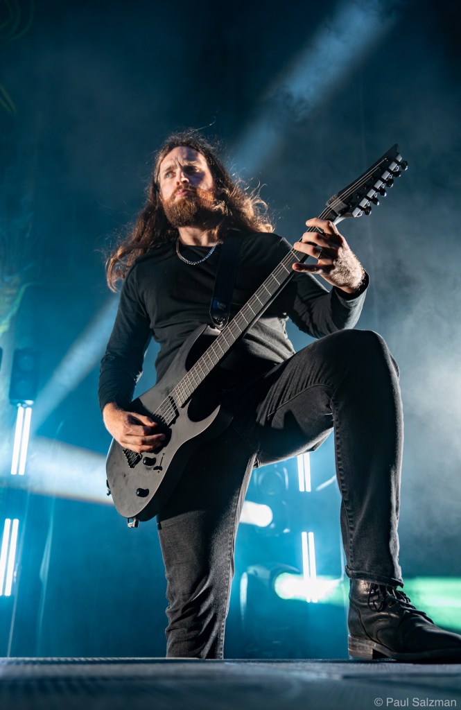 Lead guitarist Adam De Micco was outstanding, with Andrew O’Connor keeping pace on rhythm guitar and Michael Yager holding down bass and backing vocals. The trio maintained a blistering pace that showcased exactly why Lorna Shore sits atop the genre. Their tones were beautifully blended, and De Micco’s solos were highlighted with intentional lighting cues that drew all eyes where they belonged—a detail I always appreciate.