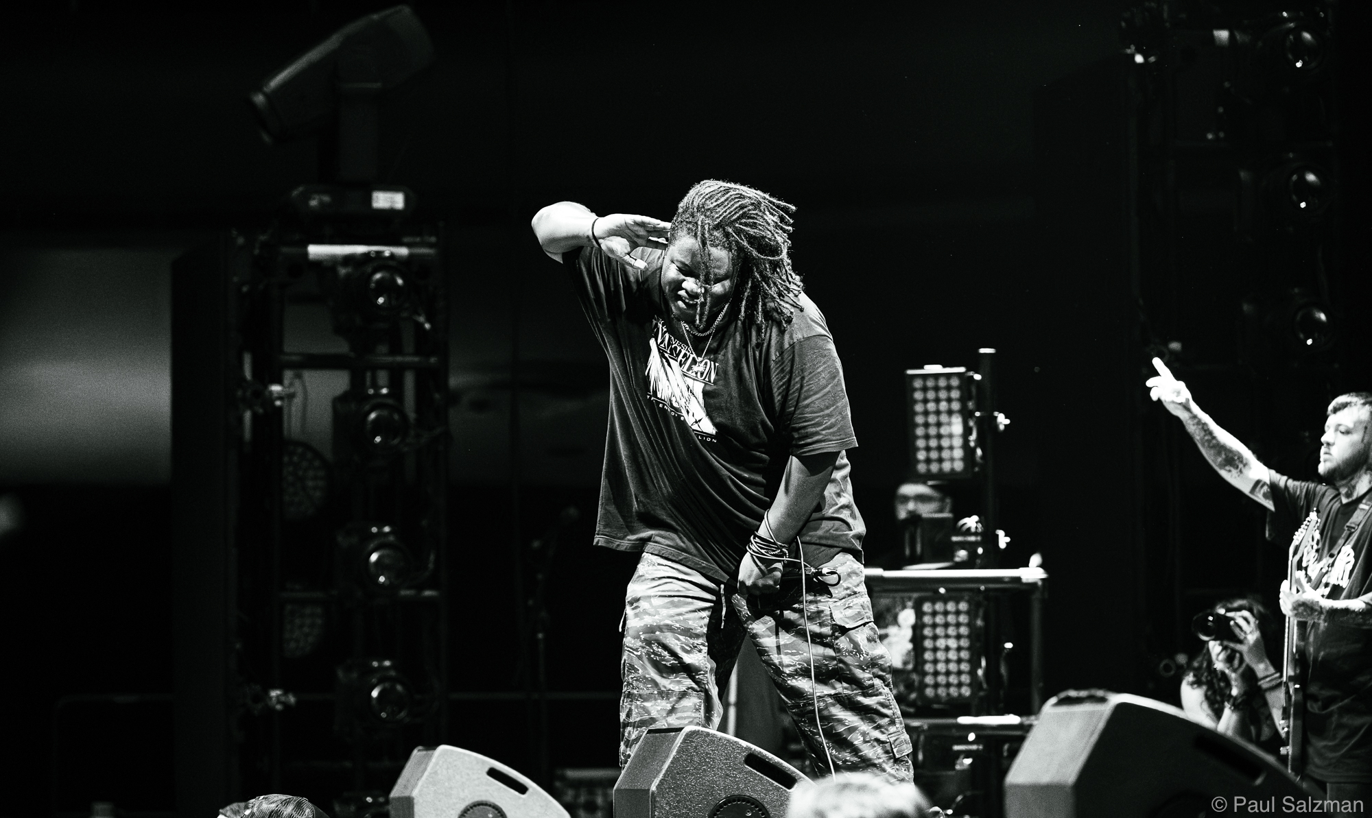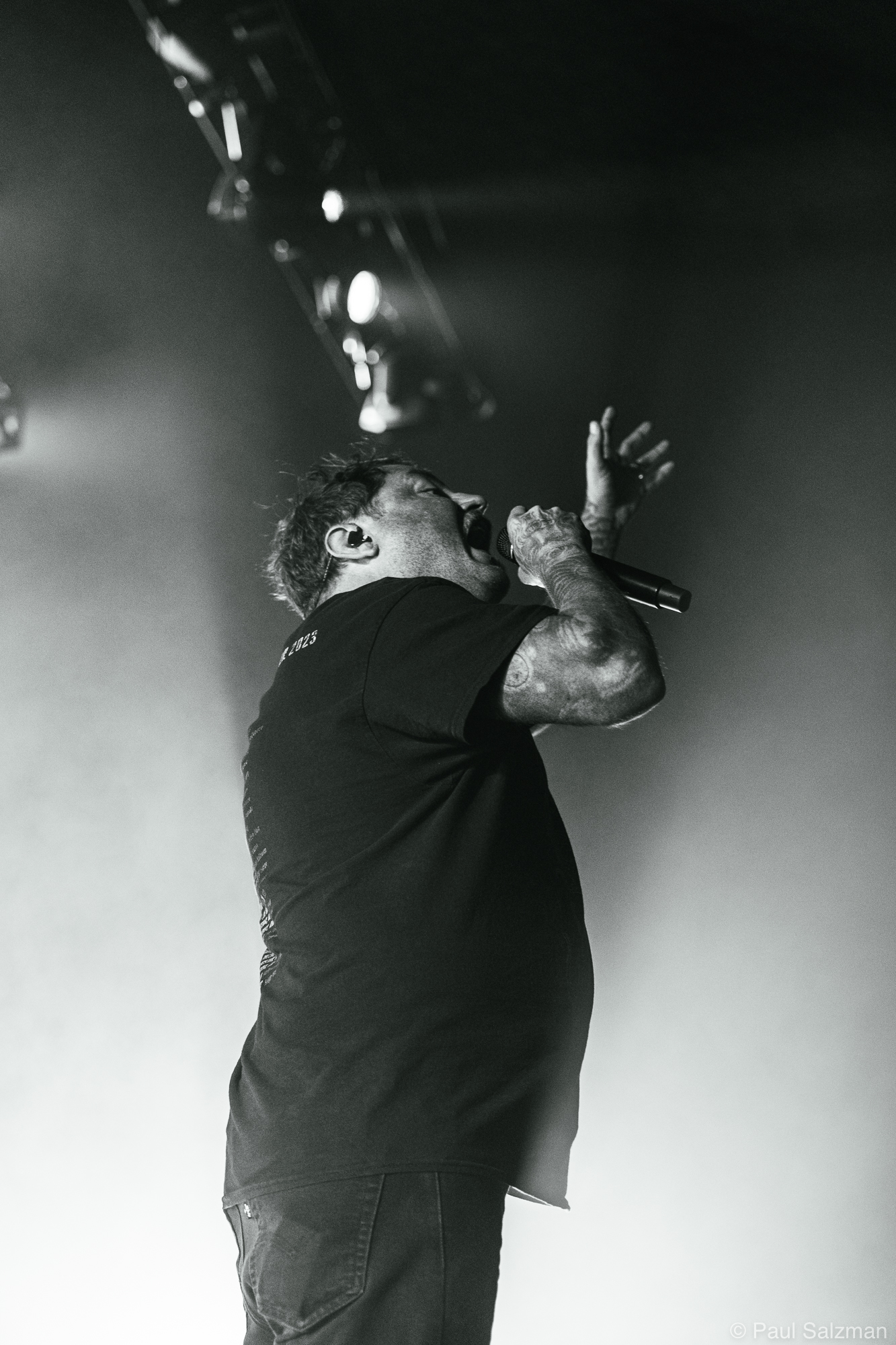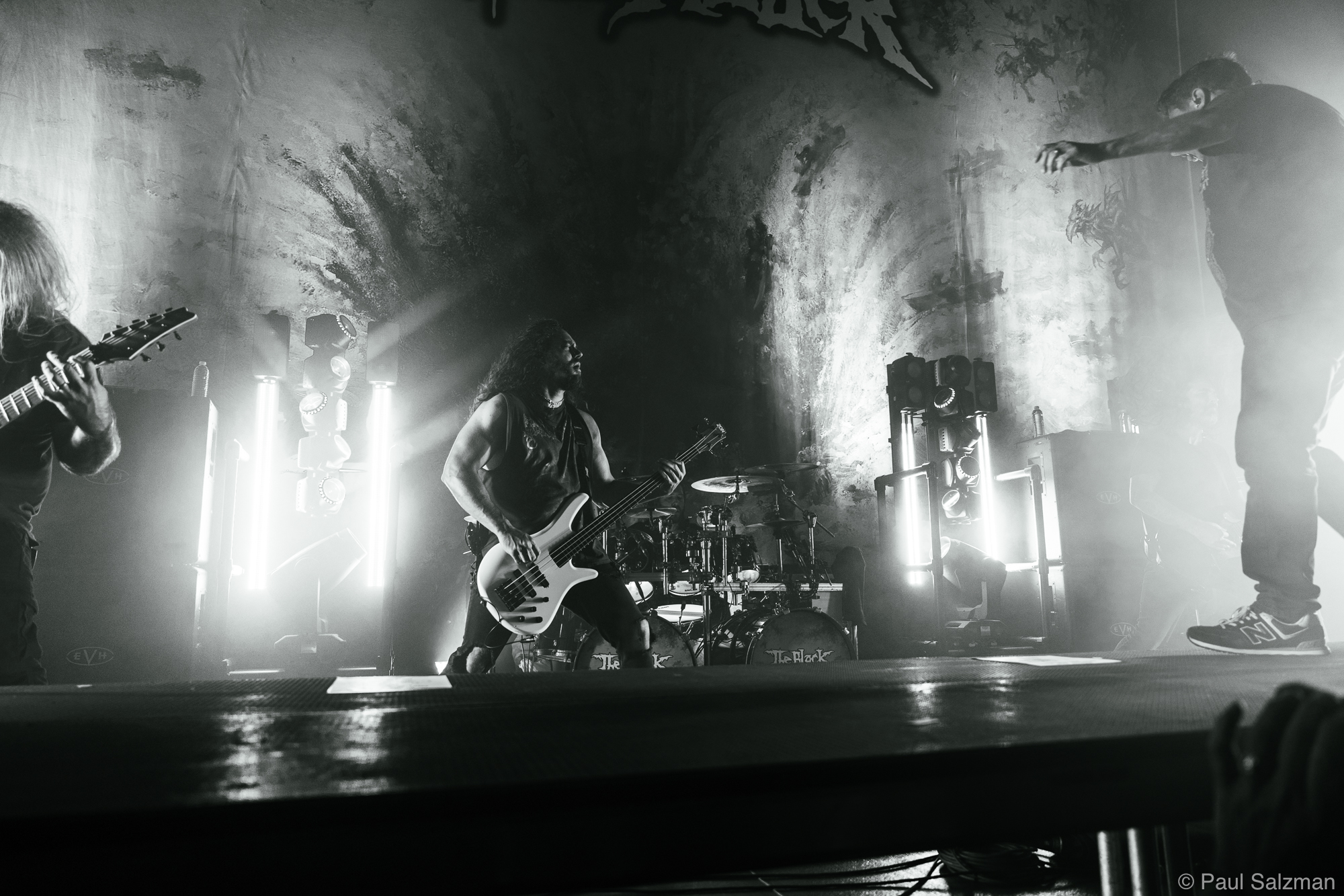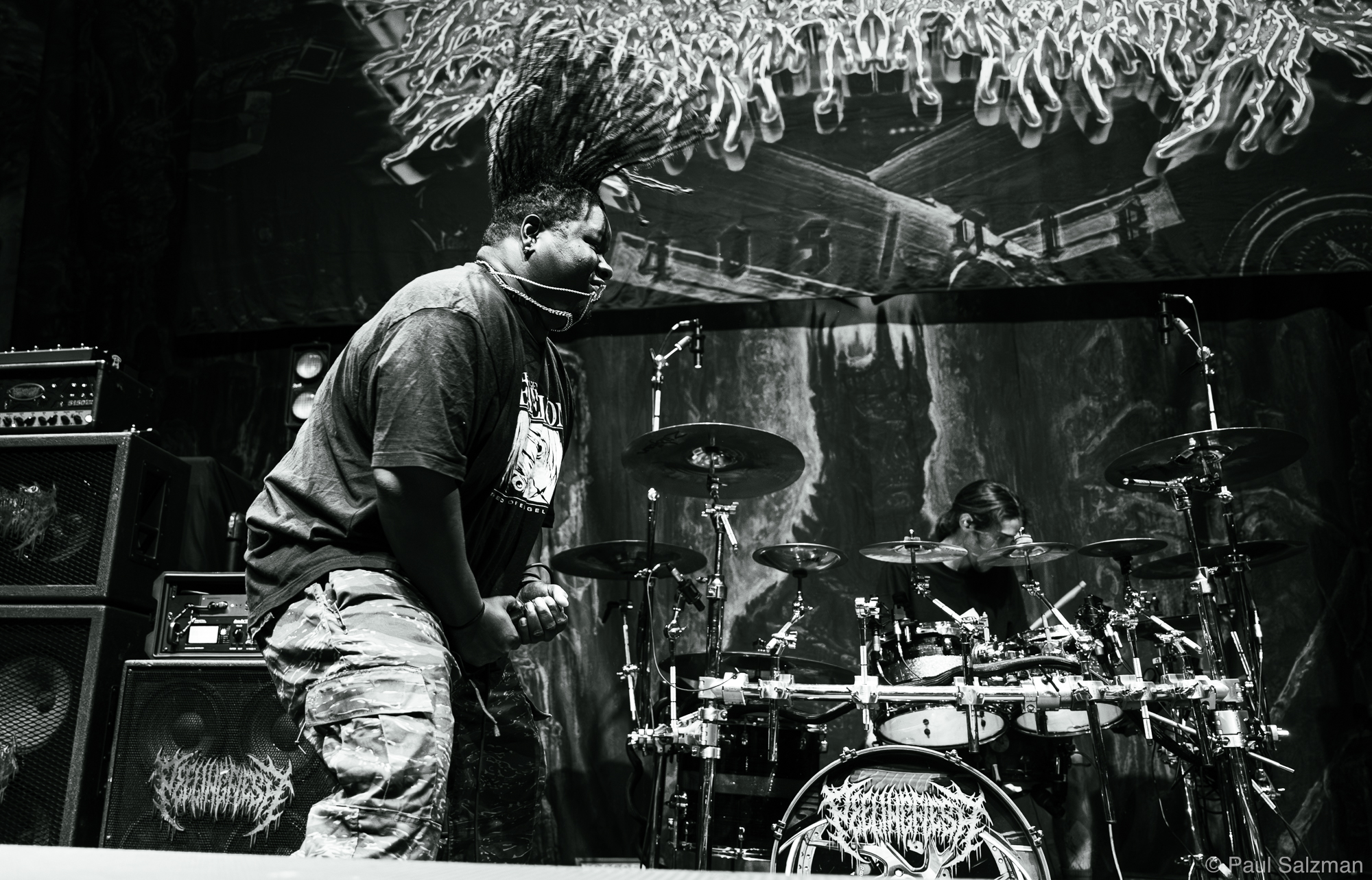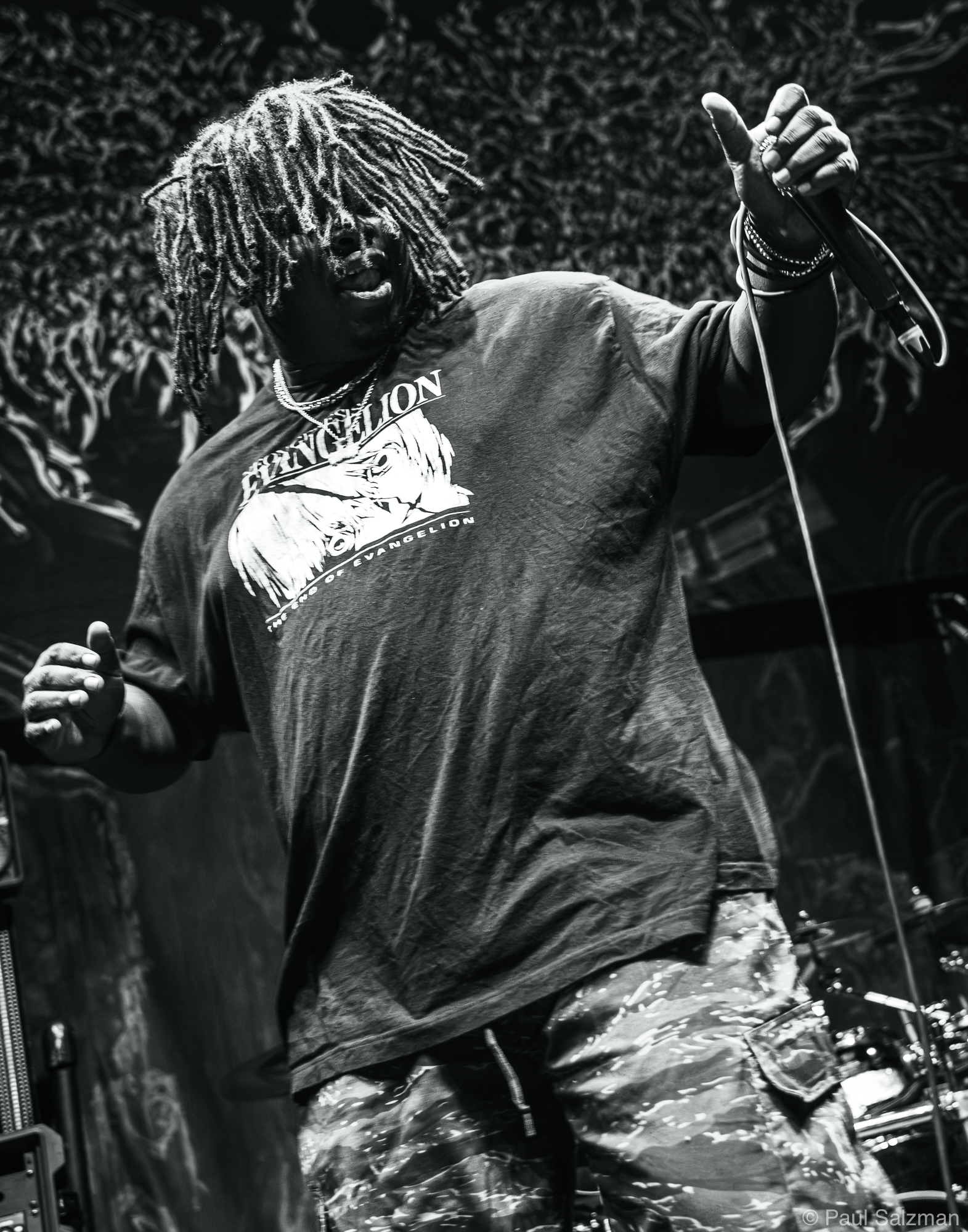 By 6:30 p.m., PeelingFlesh kicked things off. Hailing from Oklahoma City, this relatively new band has exploded in popularity thanks to their viral mix of deathcore, death metal, and sample-heavy humor—borrowing from memes, movies, and rap tracks. They’ve been hard at work on a new album and have toured relentlessly across both hardcore and death metal bills. Their unique sound had the crowd hyped from the jump.