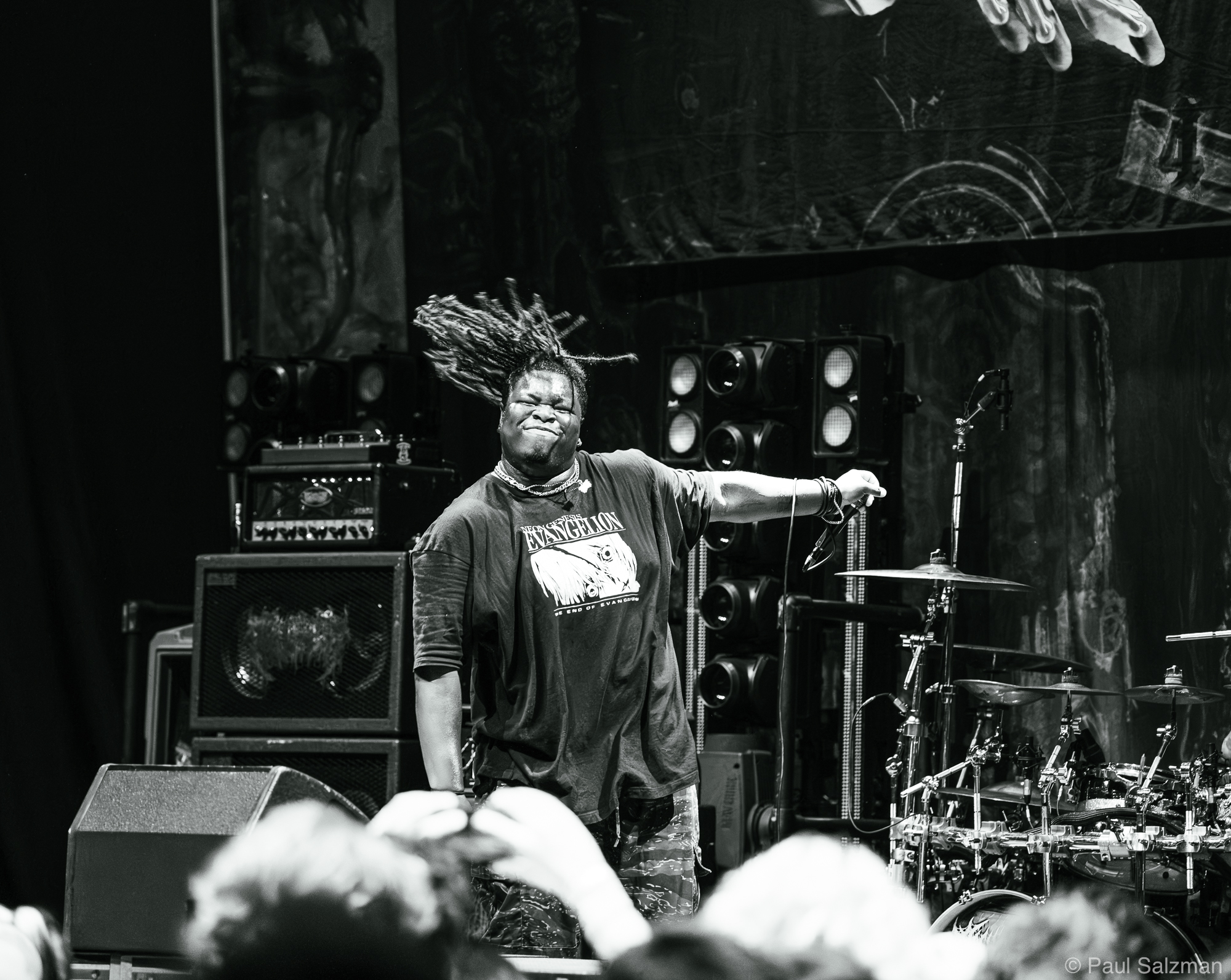 The crowd responded in kind, launching massive pits in the center of the floor that matched the brutality of the next run of songs: “Unbreakable,” “Of the Abyss,” and “Sun//Eater.” As expected in San Francisco, pit and crowd-surf etiquette was on point—anyone who fell was helped up instantly, and security expertly caught crowd surfers at the barricade.